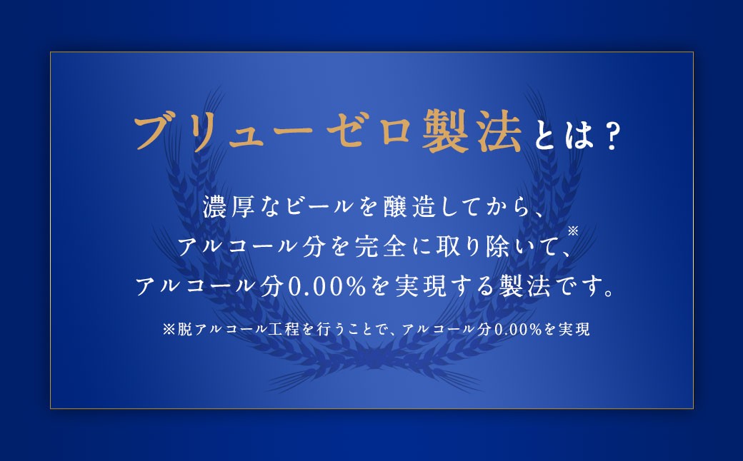 通常の倍以上のうまみ成分を残す”という、「ブリューゼロ製法」によってアルコール分0.00%を実現。ひと口で違いが分かる、ビール味のアルコールゼロです。