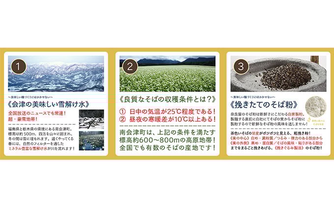 | 容量 | 生裁ちそば120本×6本/そば粉(そば(会津)) 美味しいめんつゆ180ml 〇加工地:福島県南会津町 |