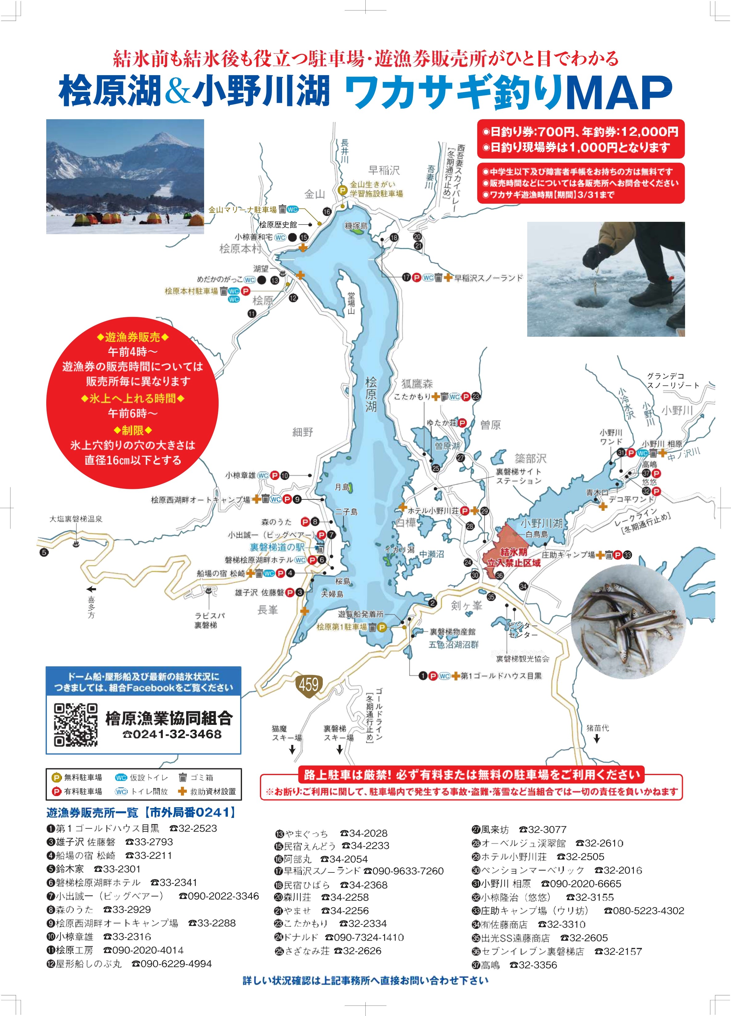 【遊漁区域】 檜原湖・小野川湖及び流入河川(但し、禁漁区及び指定漁場を除く)