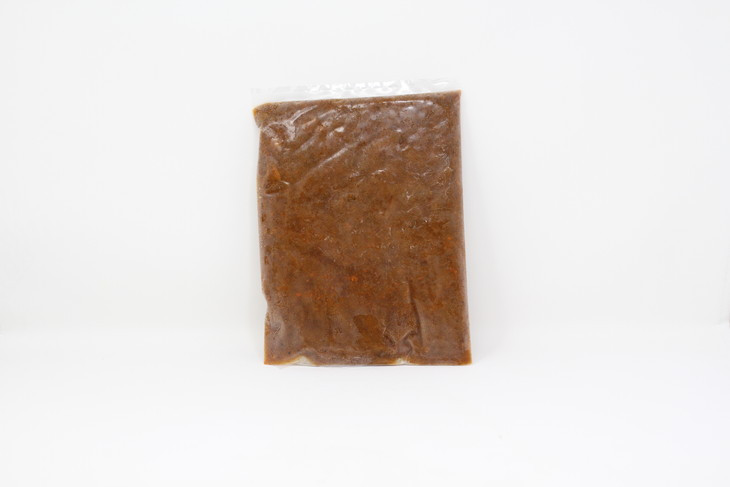 水、玉ねぎ、トマト、ポークブイヨン、チキンブイヨン、オレンジジュース、中濃ソース、ワインビネガー、椎茸、ブルーベリー、香辛料(コリアンダー、クミン、カルダモン他)、/調味料(アミノ酸等)、増粘剤、カラメル色素、酸味料(材料の一部に豚、鳥、牛肉、ゼラチン、りんご、小麦、大豆、オレンジ、ごま、乳製品、バナナを含む)