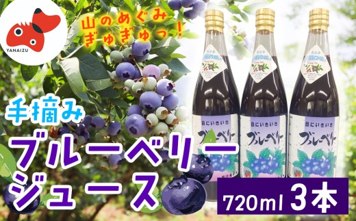 <山の恵みぎゅっと!>手摘みブルーベリージュース 720ml <3本セット>【1362298】