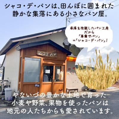 | 容量 | ■お礼品の内容について ・シャコ・デ・パンのパンセット[食パン2本、シャコパン4個] 製造地:福島県柳津町 ■原材料・成分 食パン:小麦粉、牛乳、素焚糖、バター、ショートニング、脱脂粉乳、天日塩、酵母 (小麦・乳使用) シャコパン:小麦粉、全粒粉、米麹酵母、素焚糖、脱脂粉乳、天日塩 (小麦・乳使用) |