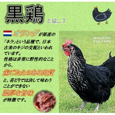 黒鶏(ネラ)とは、オランダが原産の品種で、日本古来のキジの交配ともいわれ、「野放しにすると止まり木にとまる」野性的な鶏で、卵肉兼用種として有名です。