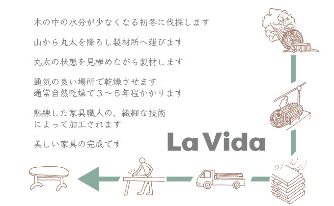 東北で育った山桜のみを使用したラ・ビーダ【三春支店】のオリジナル製品「aテーブル」です。