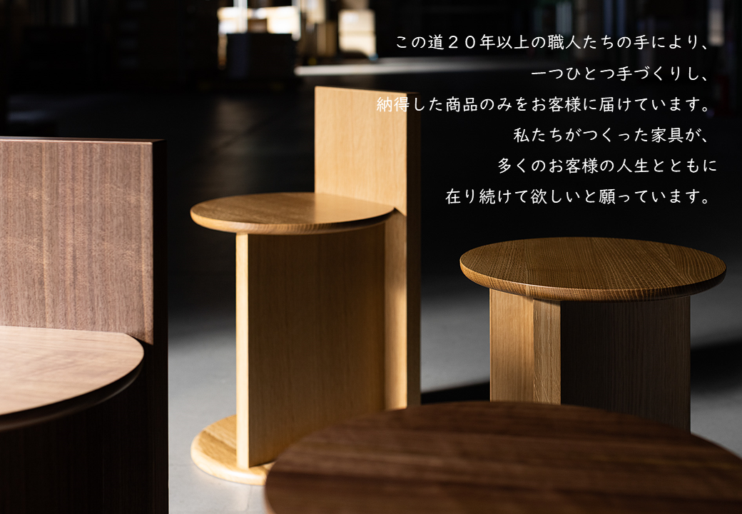 私たちがつくった家具が、多くのお客様の人生とともに在り続けて欲しいと願っています。