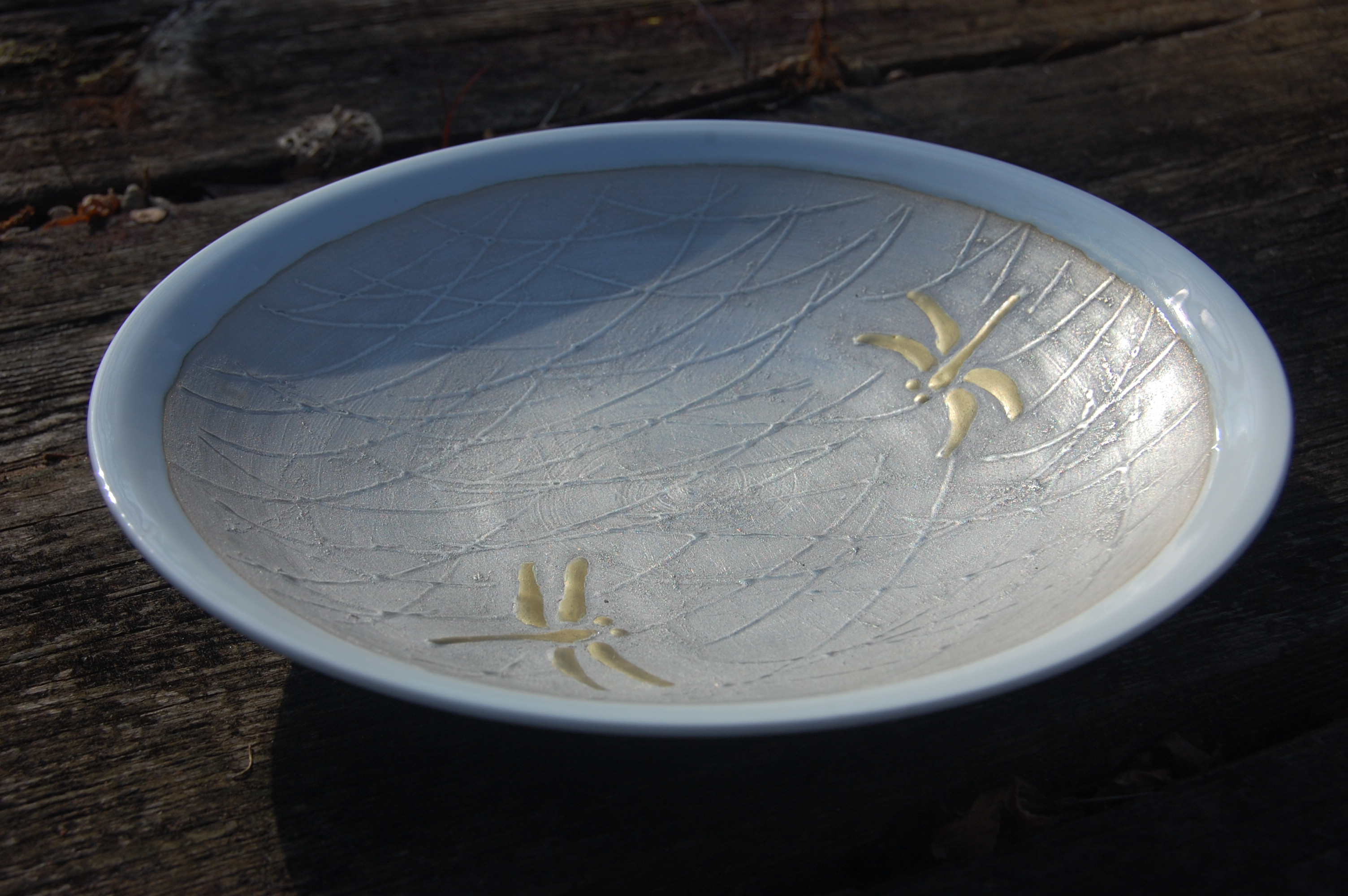 チョイスPayポイントと交換できる品 ひとつひとつ手作りのものをお届けいたします 土志工房【銀彩流水文とんぼ皿】23×23×4 陶器 焼き物