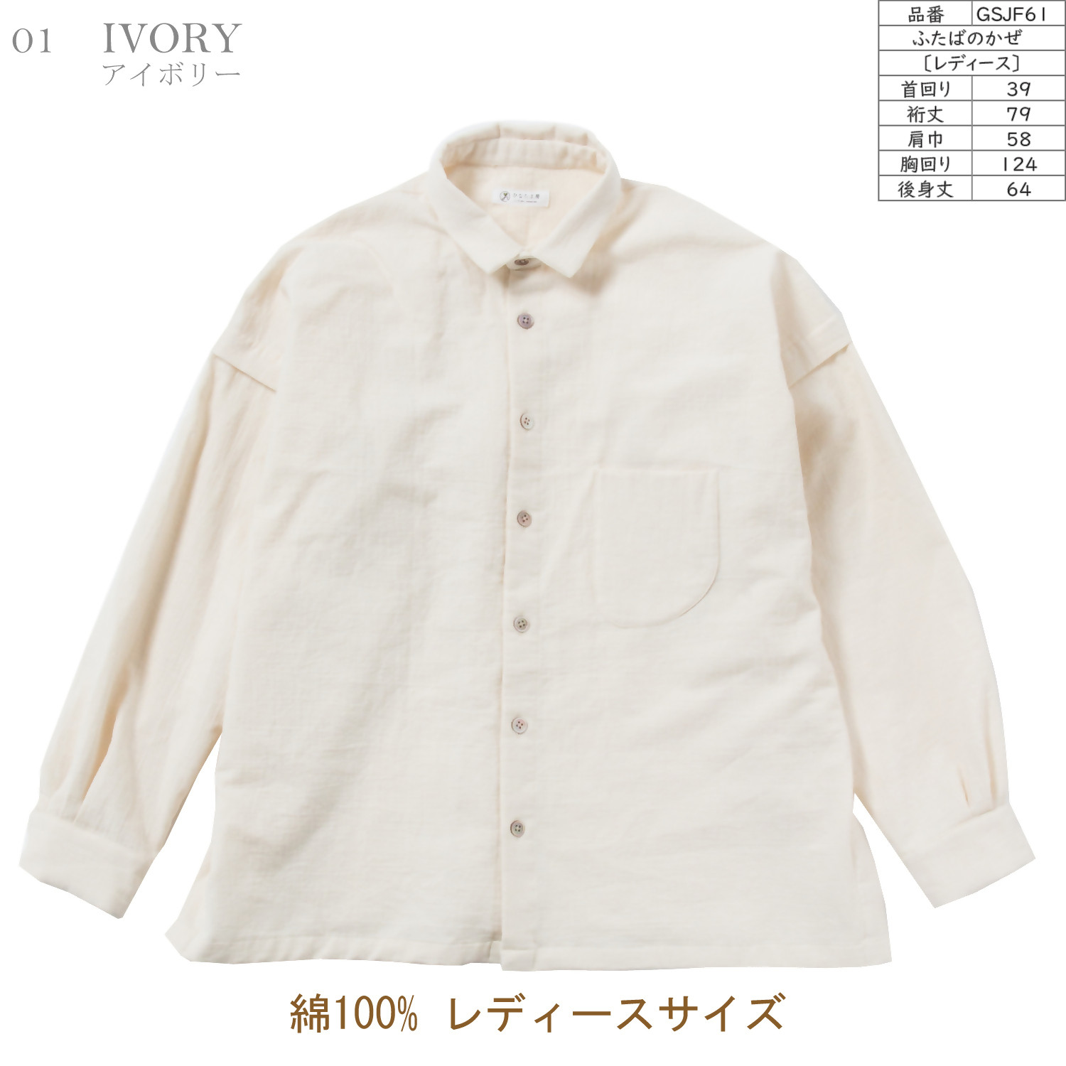 ハギレ0%、生地を使い切るデザインのサステナブルなシャツ ふたばのかぜ カジュアルシャツ 綿100% レディースサイズ