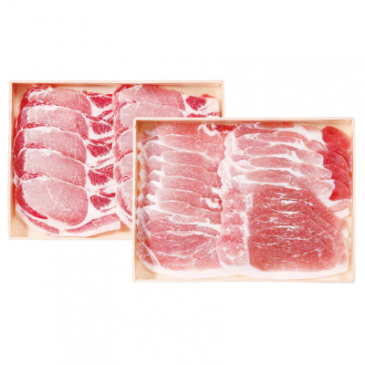 灰汁が少なく焼縮みが少ない豚肉です。生姜焼きの定番と言われるロース肉と脂をきにする方への心遣いとして、脂身の少ない赤身の多いモモ肉をセット致しました。