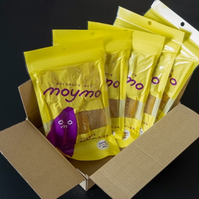 気軽に持ち歩きやすいジップ付きの袋で、小腹が減ったらぱくっと食べたり、友だちとシェアしたり、たまには大好きなペットともシェアしたり。ヘルシーなお芋をいつでもどこでも楽しめる。どこでもおいも。『moymo(モイモ)』です。
