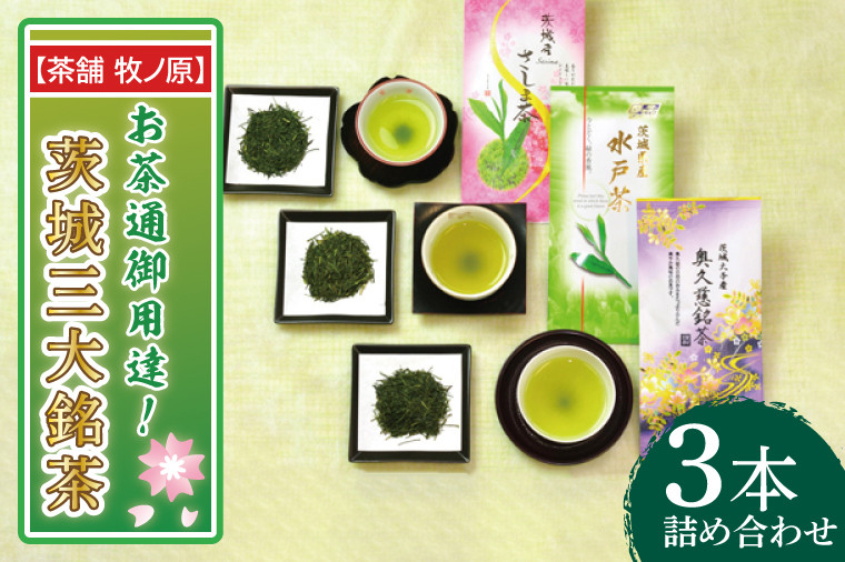 【牧ノ原】お茶通御用達!茨城三大銘茶3本詰合せ【お茶 おちゃ お土産 おみやげ 水戸茶 オリジナル ティータイム さしま茶 奥久慈茶 熨斗 水戸市 茨城県】(BX-8)