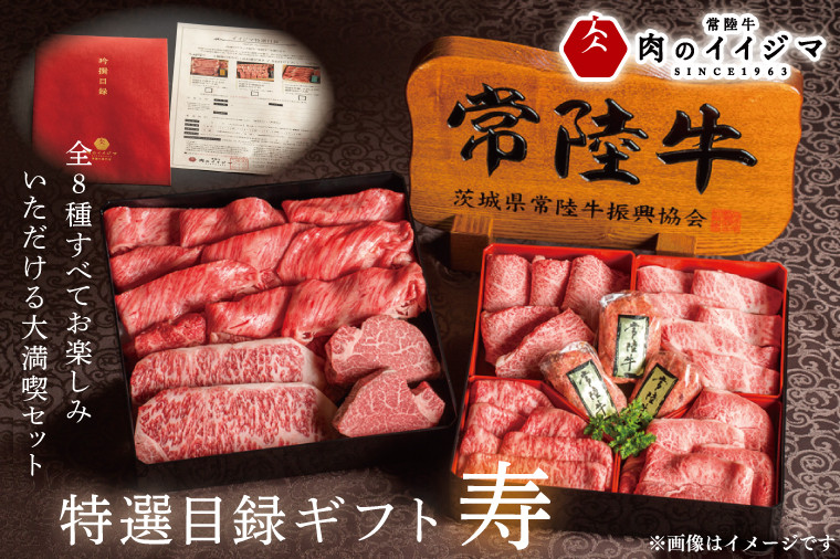 余すことなく食べ尽くせるお肉の宝箱のようなインパクト抜群のお重セットの目録ギフト 【寿】カタログギフト 常陸牛 特選 8種 特選目録ギフト ゴルフコンペ ギフト対応 サーロインステーキ フィレミニヨン すき焼き肩ロース 焼肉 ヒレ赤身 みすじ カルビ ハンバーグ 敬老の日(DU-58)