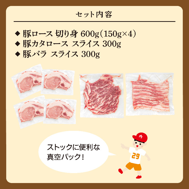 | 容量 | 豚ロース肉150g×4枚、豚カタロース肉300g、豚バラ肉300g |