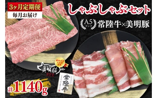【3ヶ月定期便】【常陸牛 A5ランク・美明豚しゃぶしゃぶセット…
