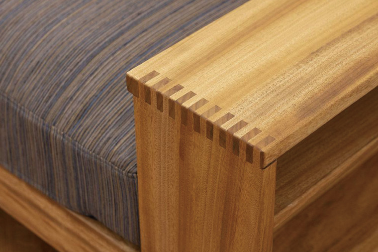 飽きの来ない直線的でシンプルなデザイン、刻み組継ぎを用いたこだわった造り。シンプルながらも細部にまでこだわった、楠のフレームのソファーです。