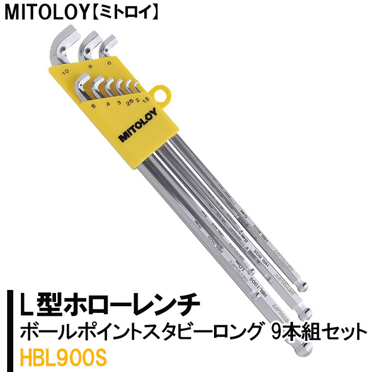 DJ-6 MITOLOY(ミトロイ)L型ホローレンチ ボールポイントスタビーロング 9本組セット HBL900S【六角棒レンチ 工具】※着日指定不可