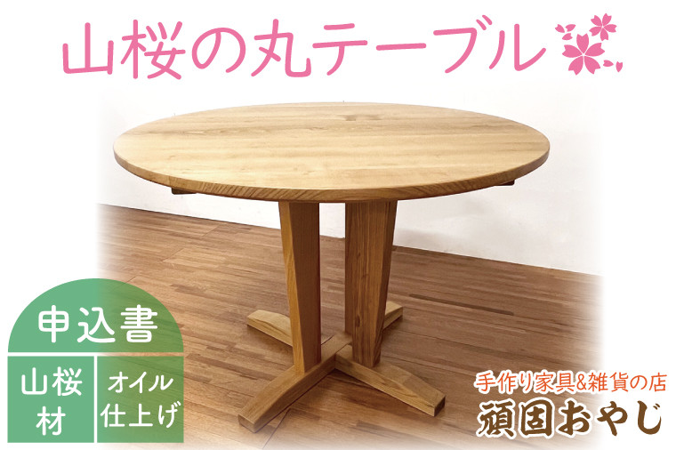 国産の広葉樹「山桜」でつくった丸テーブルです。