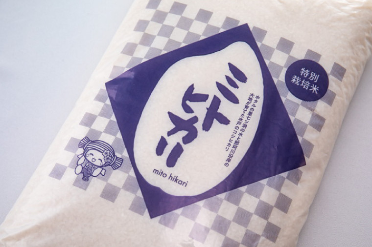 水戸北西部に広がる大地で、蛍が多数生息する七つ洞の清らかな水と那珂川沿岸の寒暖の差がある米作りに適した大地が育てた水戸のコシヒカリです。