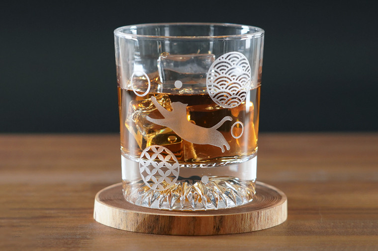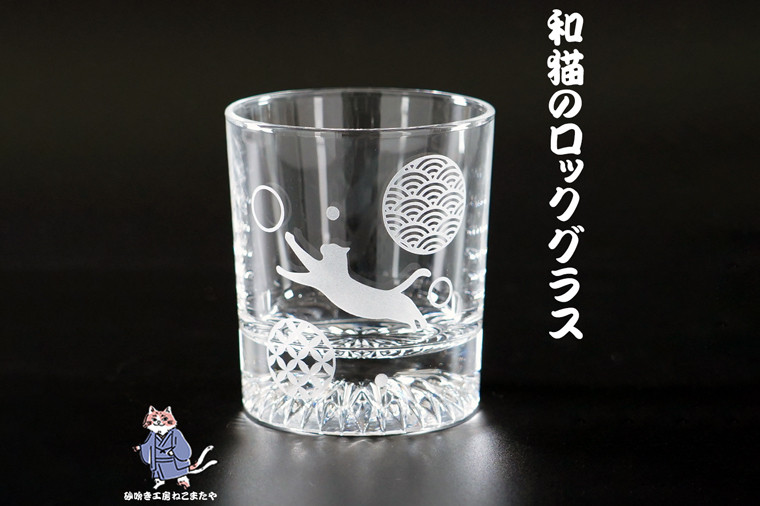 和柄 猫 ロックグラス【和柄 ウサギ ロックグラス グラス コップ ガラス 彫刻 プレゼント ギフト 就職祝い 誕生日 父の日 母の日 結婚祝い 新築祝い和風 耐熱】(HW-5)