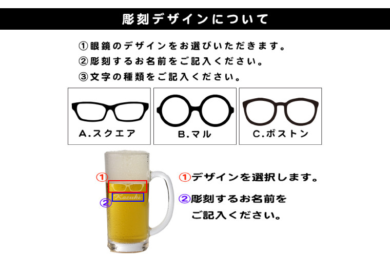 眼鏡好きのあなたに贈る名入れビールジョッキです!