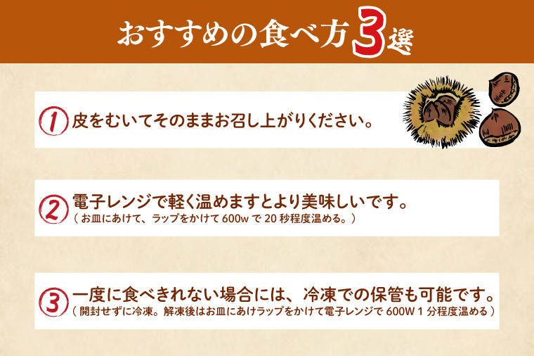 低温熟成により糖度を高め、専用の焼き栗機で丁寧に焼き上げました。