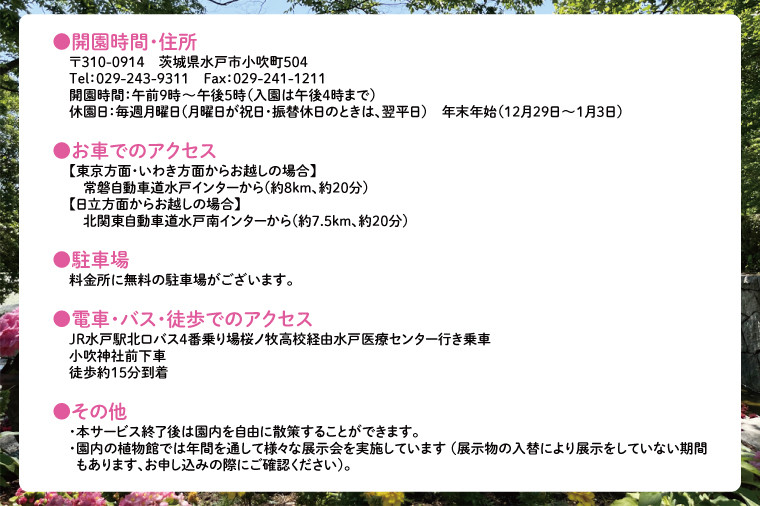 | 事業者 | 一般財団法人水戸市公園協会水戸市植物公園 他のお礼の品を見る |