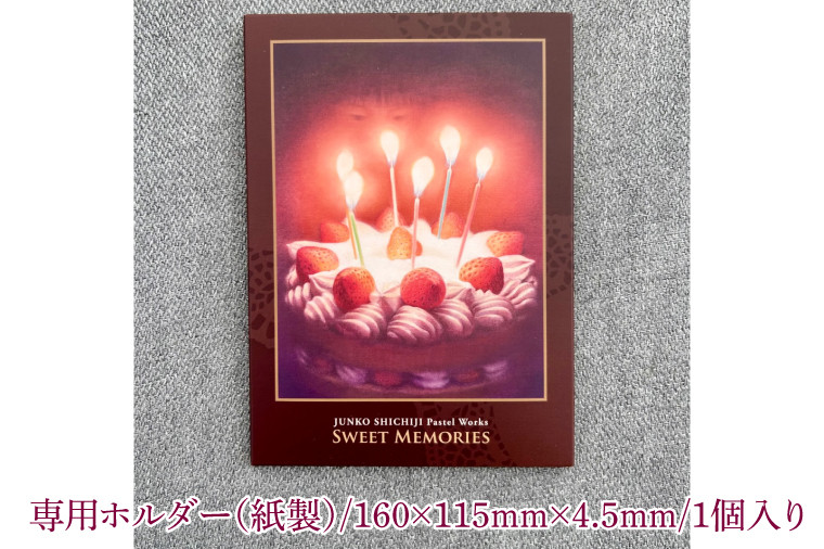 パステルで洋菓子を画面いっぱいに描いた〈SWEET MEMORIES〉シリーズのポストカードセットです。全12種のポストカード12枚が専用ホルダーに収められています。