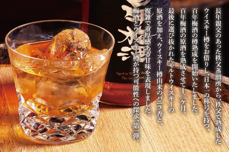 長年親交のあった秩父蒸溜所から、秩父で熟成したウイスキー樽をお借りし、日本一の称号を持つ、百年梅酒の樽熟成を開始いたしました。 百年梅酒の原酒を熟成させて12か月。最後に選び抜かれたモルトウイスキーの原酒を加え、ウイスキー樽由来のバニラ香と、複雑で重厚感ある甘味を表現しました。 梅酒とウイスキー樽が持つ可能性への探求、第一弾。 【明利酒類の梅酒に対する想い】 明利酒類は江戸時代安政年間創業の加藤酒造店を前身とし、酒造りの為に全国を渡り歩いた初代が最高の水が湧き出る現在の地に土着して以来、160年以上酒を造ってきました。 中でも日本三庭園の偕楽園がそばにあったことから、当時家庭用のお酒として浸透していた梅酒を、酒造りのプロとして非常に早い時期より着手を始めました。 また商品づくりだけでなく、講習会等の活動を通じて梅酒の美味しさを訴求し、梅酒の可能性を常に飽くことなく追求してきました。 その活動は現代においても、直売所の別春館で体験できる「梅酒づくり体験」などに引き継がれております。 【百年梅酒ブランドについて】 1998年「百年愛される梅酒」をコンセプトに「百年梅酒」が誕生。 梅酒の熟成年数が長い重厚感のある味わいが特徴で、明利酒類の調合・ブレンド技術を駆使してつくられており、第二回天満天神梅酒大会では全国124銘柄から日本一に選ばれました。 その後も数々の賞を頂き、国内外多くのお客様から絶大な支持を頂いております。 ◆返礼品について 【原材料】 梅実(国産)、醸造アルコール、糖類、蜂蜜、モルトウイスキー 【原産国】 日本 【保存方法】 常温