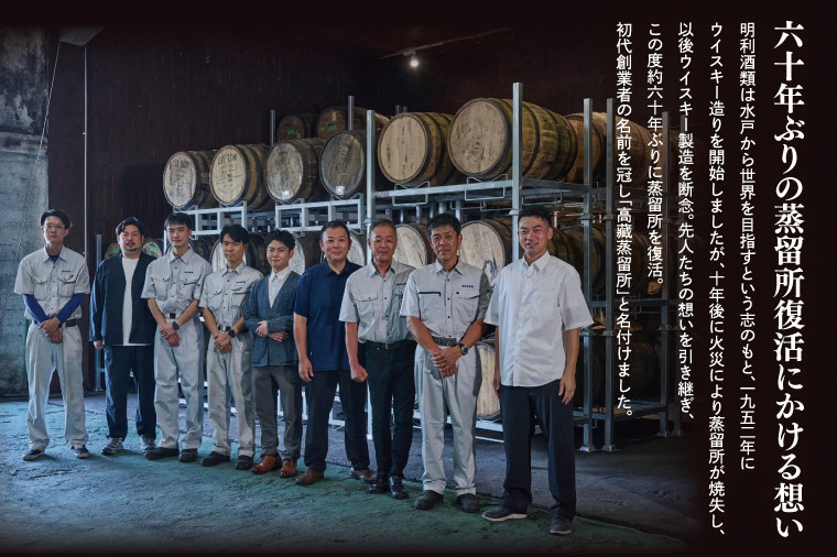 今回、約60年ぶりにウイスキー製造の免許を取得し、創立時の想いを引き継いで「高藏蒸留所」と名付け、発酵、蒸留、熟成の過程を全て、水戸市の明利酒類の土地で行っております。