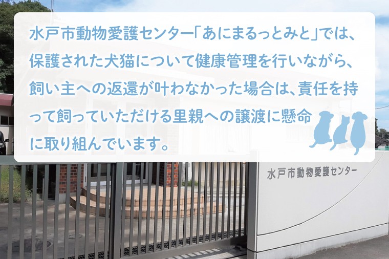 Aiming to become a city where people and animals can live happily together, Mito City is accepting donations to promote animal welfare measures, such as raising awareness of animal welfare and transferring dogs and cats rescued at the Mito City Animal Welfare Center, "Animarutto Mito."