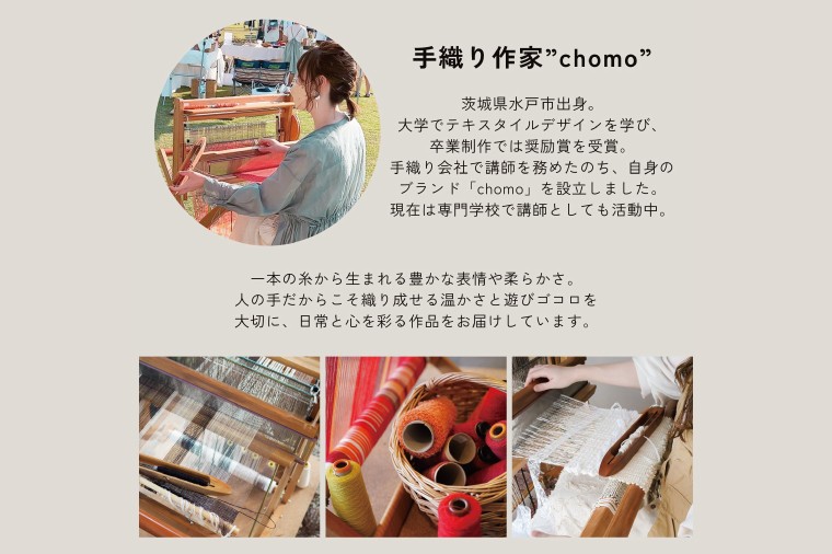 指先で力加減を微調整しながら空気を含むように織り上げているため、二つの素材が持つ魅力を最大限に惹き出しています。