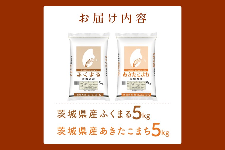 茨城の「あきたこまち」と「ふくまる」それぞれの美味しさを食べ比べてみてください! 【数量限定】【人気2銘柄食べ比べ】茨城県産 あきたこまち・ふくまる 5kg×各1袋(計10kg)【お米 ごはん あきたこまち ふくまる おにぎり ごはん 茨城県 水戸市】(JB-35)