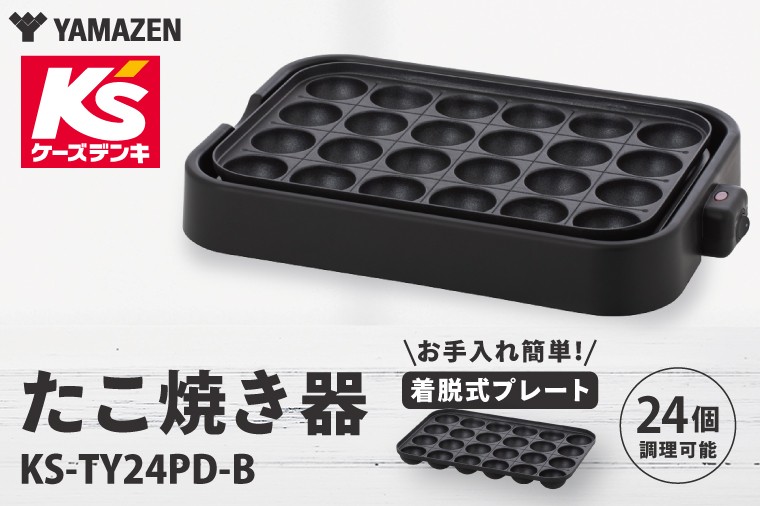 ご家庭や友人とタコパーはいかがですか♪お手入れ簡単な着脱式プレートです たこ焼き器 KS-TY24PD-B【家電 キッチン 食卓 たこ焼き パーティー 新生活】(NE-22)