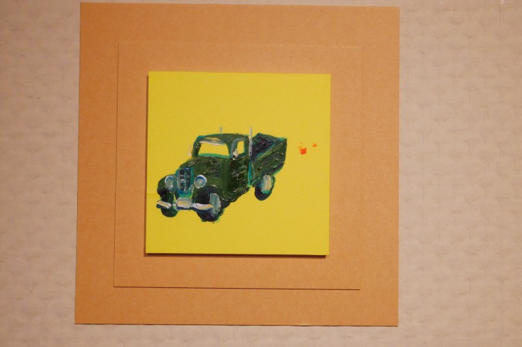 | 容量 | アクリル画(背面に直筆で作家名・タイトル・制作年月日を明記) ■タイトル:カーキ色に塗り替えられたトラック ■制作年・場所:2025年7月、水戸市内の特設アトリエで制作 ■寸法:H7.5㎝×W7.5㎝ ■材質:アクリル、千代紙 |