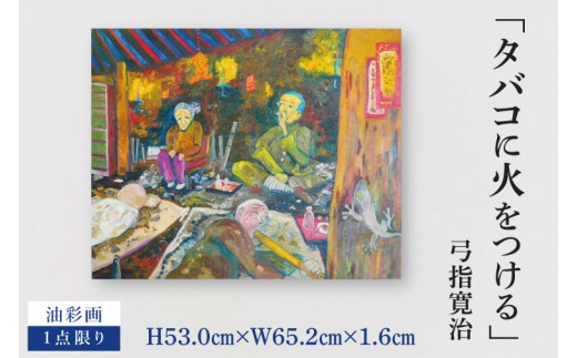 | 容量 | 油彩画(背面に直筆で作家名・タイトル・制作年月日を明記) ■タイトル:タバコに火をつける(たばこにひをつける) ■制作年・場所:2025年7月、水戸市内の特設アトリエで制作 ■寸法:H53.0㎝×W65.2㎝×1.6㎝ ■材質:油彩、木枠パネル |