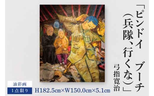 | 容量 | 油彩画(背面に直筆で作家名・タイトル・制作年月日を明記) ■タイトル:ピンドイ ブーチ(兵隊、行くな) ■制作年・場所:2025年7月、水戸市内の特設アトリエで制作 ■寸法:H182.5㎝×W150.0㎝×5.1㎝ ■材質:油彩、木枠パネル |