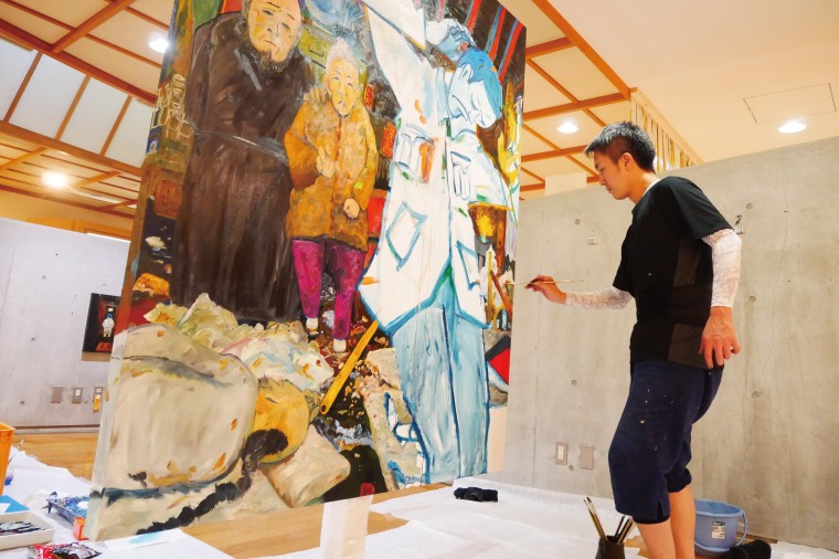 気鋭のアーティスト・弓指寛治氏が水戸市内の特設アトリエに長期滞在し、渾身の力でプロデュースした美術展覧会
