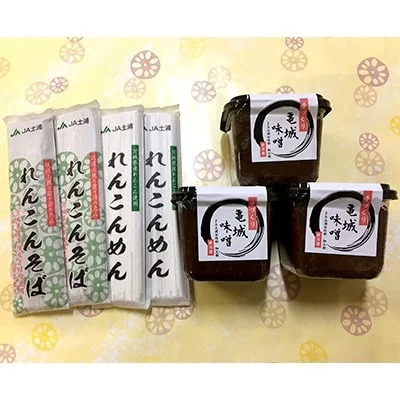 | 容量 | ■内容量/製造地 亀城味噌 600g×3個/製造地:茨城県土浦市 れんこんめん(乾麺) 200g×2袋/製造地:茨城県 れんこんそば(乾麺) 200g×2袋/製造地:茨城県 ■原材料 【亀城味噌】大豆、米、食塩、麹 【れんこんめん 乾麺うどん】小麦粉、れんこん粉末、食塩 【れんこんそば 乾麺】小麦粉、そば粉、れんこん粉末、食塩 ■提供元 水郷つくば農業協同組合 |