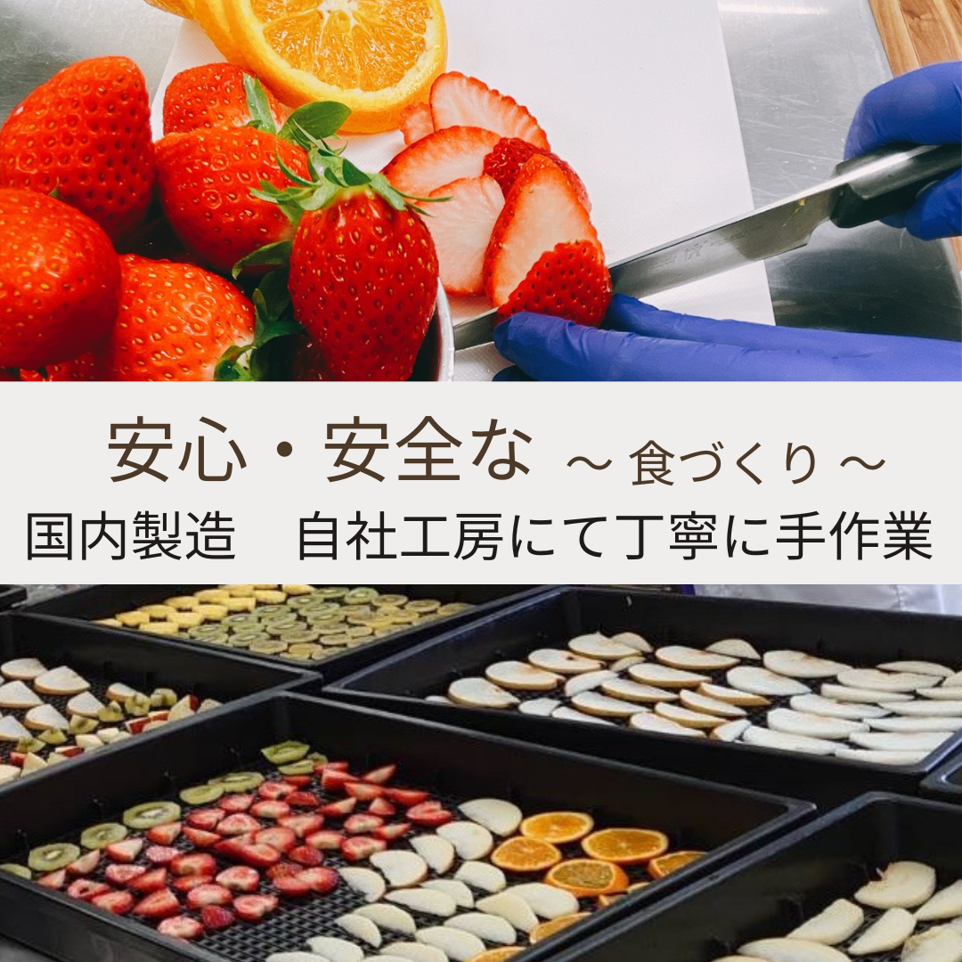 | 消費期限 | ぽんふる…賞味期限:加工後から4ヶ月 ドライフルーツ(ミックス)…賞味期限:加工後から6ヶ月 |