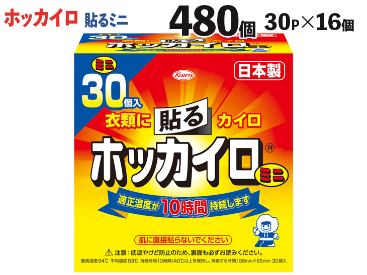 いつでも手軽にぽっかぽか、適正温度が10時間持続 ホッカイロ 貼るミニ 30P×16個(計480個) ※離島への配送不可 | カイロ 480枚 ミニサイズ 貼る 大容量 使い捨て 防寒 寒さ対策 冷房冷え 冷え対策 スポーツ観戦 防災 通勤 通学 腰 背中 ご家庭用 ギフト 贈答 贈り物 プレゼント お中元 お歳暮 茨城県 古河市 _DJ03