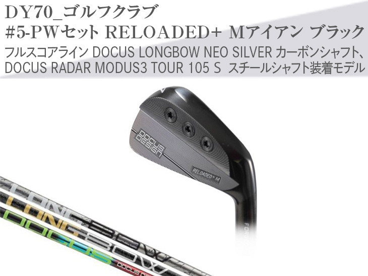 注目度急上昇! デザイン性、機能性にこだわったゴルフブランド「DOCUS」 ゴルフクラブ #5-PWセット RELOADED+ Mアイアン ブラック フルスコアライン DOCUS LONGBOW NEO SILVER カーボンシャフト、DOCUS RADAR MODUS3 TOUR 105 S スチールシャフト装着モデル | golf ゴルフ ごるふ DOCUS ドゥーカス スポーツ スポーツ用品 おしゃれ こだわり クラブ 茨城県 古河市 _DY70
