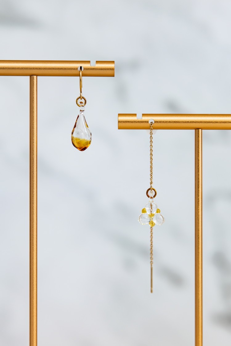 古河市にあるガラス屋さんと共同開発したアートデザインのピアスです。