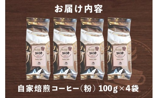 自家焙煎 コーヒー セット ( 粉 ) 100g×4袋 飲みやすい まろやか 厳選 珈琲 コーヒー豆 珈琲豆 自家焙煎コーヒー豆 お任せ 詰め合わせ 飲み比べ 詰合せ おまかせ コーヒー好き 茨城県 石岡市 (E15-011)