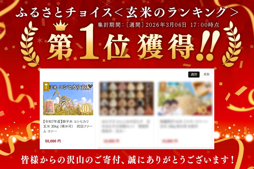 豊かな自然と水と土で育った美味しい「コシヒカリ」です。 【令和7年産】獅子米 コシヒカリ 玄米 30kg (精米可) 岡田ファーム コンテスト受賞米 お米 米 おこめ ブランド米 こしひかり 30キロ 国産 単一原料米 コメ こめ ご飯 銘柄米 茨城県産 茨城 産直 産地直送 農家直送 ごはん 家庭用 贈答用 お取り寄せ ギフト 茨城県 石岡市 (B02-004)
