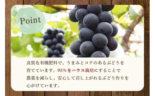 また面積の95%がハウス栽培なため、減農薬が可能で、安心して食べていただけるぶどう栽培を心掛けています。