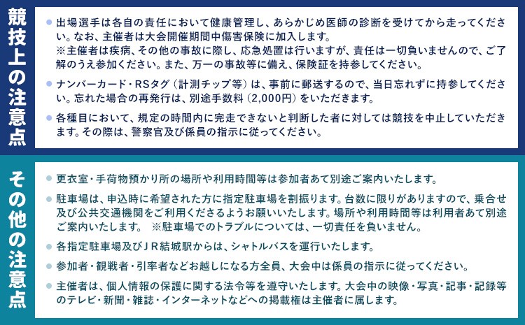 ・健康な方で出場する各種目の当該距離を完走できる方。また、未成年者は保護者の同意書が必要です。