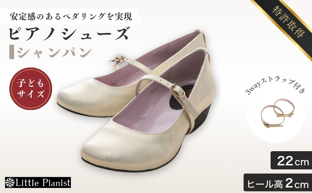【22cm】ローヒール 3WAY ピアノシューズ (シャンパンゴールド・子供サイズ) | 靴 くつ シューズ レディース 日本製 特許取得 滑り止め付 負担軽減 ピアノ 専用 お洒落 オシャレ 上品 大人 大人用 お祝い 贈り物 ギフト 茨城県 龍ケ崎市