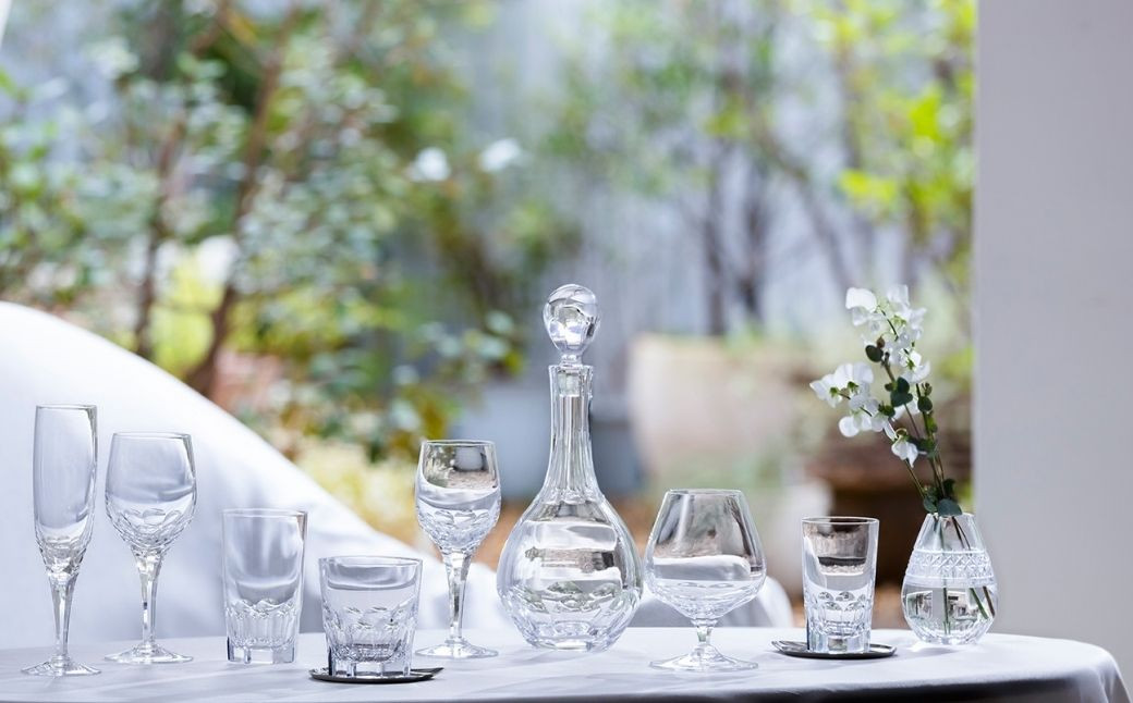 クリスタルガラスとは、水晶のように透明なガラスという意味です。精選された高純度の原料と、洗練されたデザイン、熟達した技術によって創り出された最高級クリスタルガラスは高い透明度を有し、美しい輝き、澄んだ音色が特徴です。