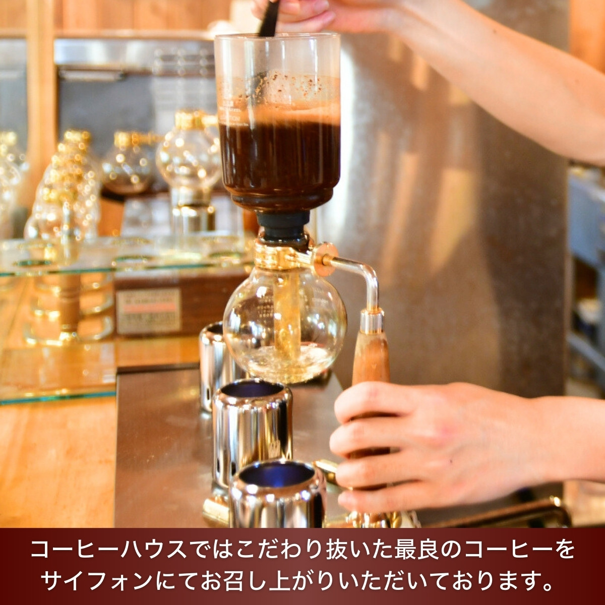 龍ケ崎市内には焙煎工場である珈琲豆やとむとむ北竜台店と喫茶店のCOFFEEHOUSEとむとむ龍ケ崎店がございます。龍ケ崎工場で焙煎したコーヒーをサイフォンで丁寧に抽出したコーヒーを喫茶店でお楽しみいただけます。