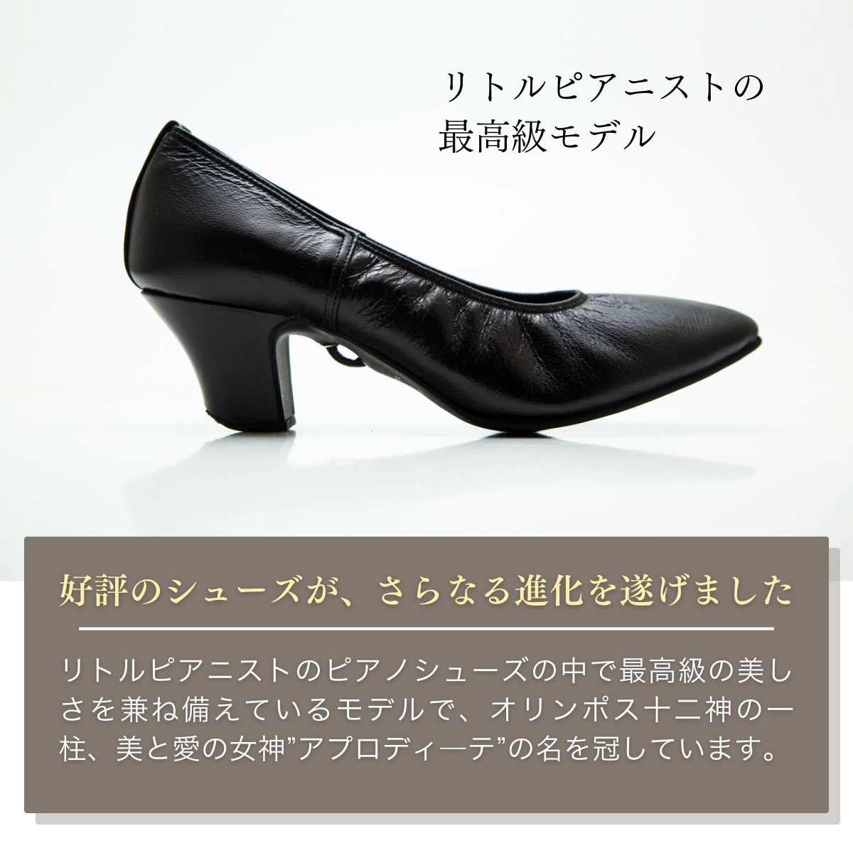 特許ヒールで奏でる思い通りの音色。豊かな音楽を足元からサポートします 【22cm~25cm】ヒール高5cm 3WAYシリーズ最高峰ピアノシューズ アプロディーテ(ブラック) | 靴 くつ シューズ レディース 日本製 特許取得 滑り止め付 負担軽減 ピアノ 専用 お洒落 オシャレ 上品 婦人 お祝い 贈り物 ギフト 茨城県 龍ケ崎市