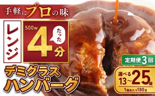レンジでたった4分でプロの味。 【定期便3回】【選べる数量】本格デミグラス ハンバーグ 13個~25個 計2.3kg~4.5kg | 冷凍 小分け ハンバーグ デミグラスソース 牛 豚 惣菜 お弁当 おかず 粗びき レンジ レンチン 温めるだけ 簡単調理 小分け 茨城県 龍ケ崎市
